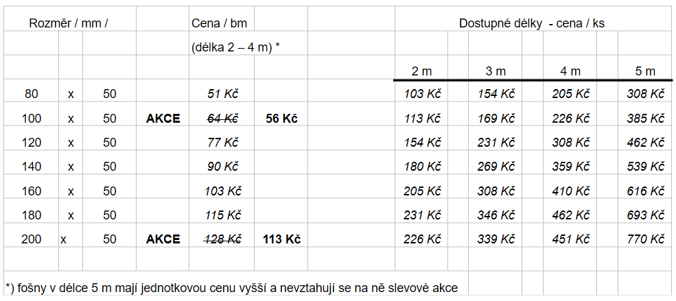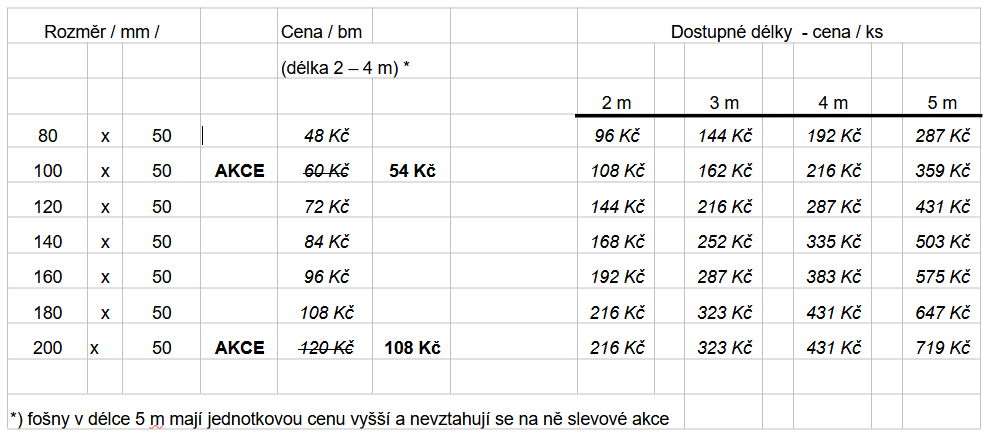 Vzduchosuché šířkově tříděné hraněné fošny tloušťka 50 mm kvalita A / B. Ceny jsou uvedeny včetně DPH 21 %
