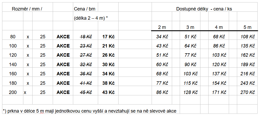 Vzduchosuchá šířkově tříděná hraněná prkna tloušťka 25 mm kvalita C. Ceny jsou uvedeny včetně DPH 21 %