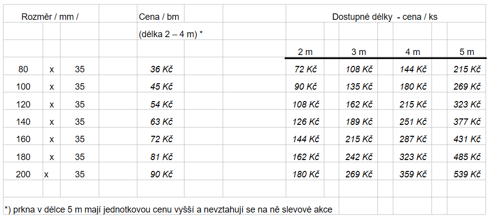 Vzduchosuchá šířkově tříděná hraněná prkna tloušťka 35 mm kvalita A / B. Ceny jsou uvedeny včetně DPH 21 %
